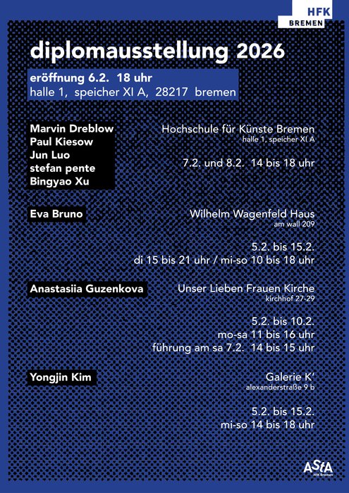 The Faculty of Fine Arts and Design at the HfK Bremen includes diploma and master's degree courses in Fine Arts as well as bachelor's and master's courses in Integrated Design and Digital Media.