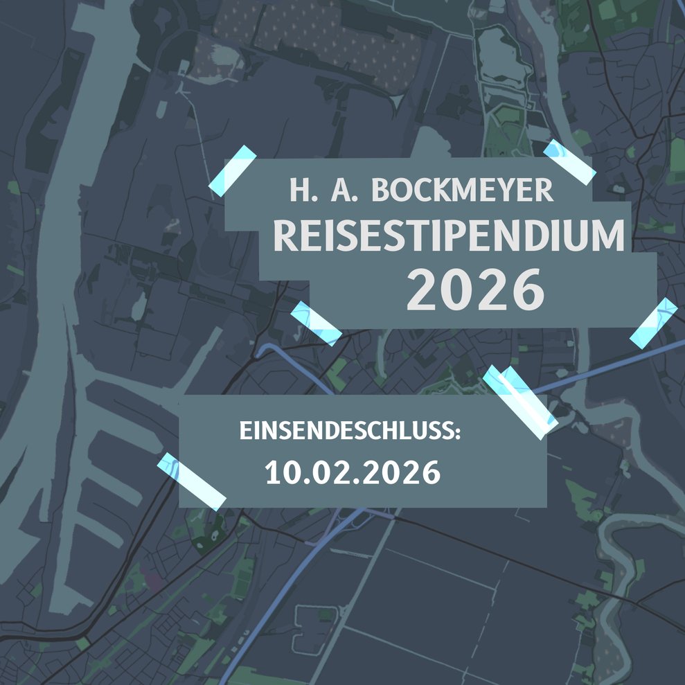 We would like to inform you that the H. A. Bockmeyer Travel Scholarship will be awarded again next year at the Hochschule für Künste Bremen. The H. A. Bockmeyer Travel Grant financially supports travel projects of students and alumni in the Fine Arts, Integrated Design and Digital Mediaprograms of the HfK Bremen.