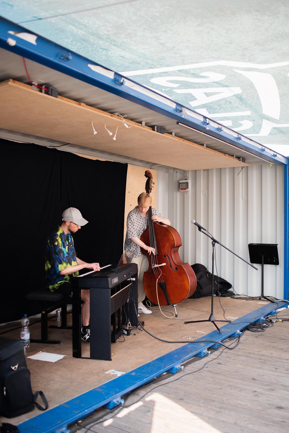 Jazz duo Magnus Bodzin (double bass) and Moritz Schöwing (piano), they study in the 6th and 8th semester, Bachelor of Music.