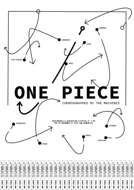 “ONE PIECE – Choreographed by the Machines” is an evening with machine performances exploring experimental, critical, playful and humorous forms of human–machine interaction. The evening is a choreographed movement by machines and humans alike.