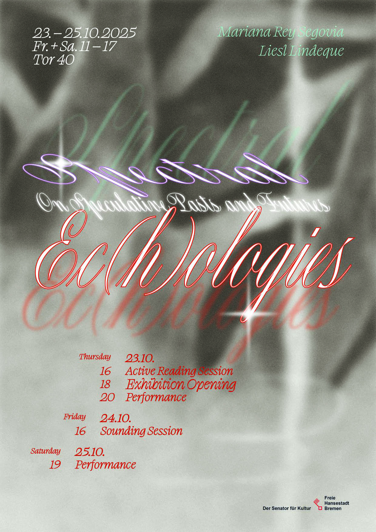 ”Spectral Ec(h)ologies“ explores ghosts as living forces of the present and future. Through sculpture, installation, sound, and text, an immersive space unfolds where social and ecological decay, colonial traces, and extractivist structures appear as the spectres of our time. The exhibition invites reflection at the threshold between collapse, transformation, and renewal. A space where memory, grief, and imagination can coexist.