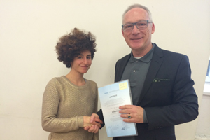 Der diesjährige DAAD-Preis der Hochschule für Künste Bremen geht an eine südamerikanische Künstlerin. Auf der letzten Sitzung des Akademischen Senats (17.12.2014) überreichte HfK-Rektor Prof. Dr. Herbert Grüner die mit 1000€ dotierte Auszeichnung an Paula Hurtado Otero.
